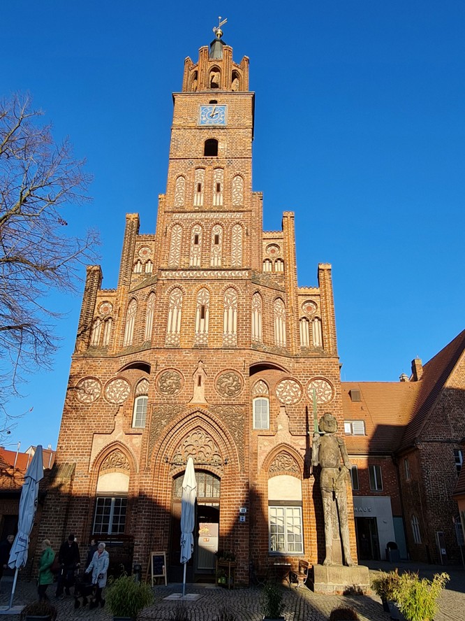 Heute haben wir noch einen Zwischenaufenthalt in der Hansestadt Brandenburg eingelegt. Nach einem längeren Fußmarsch haben wir (wieder) historische Backsteinkirchen, Stadttürme und vor dem Rathaus den Roland gesehen.