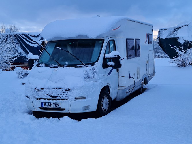 Nun haben wir auch mal "Wintercamping" ausprobiert und den Schnee im Rahmen der Möglichkeiten das Winterwetter "genossen" 🤷‍♂️