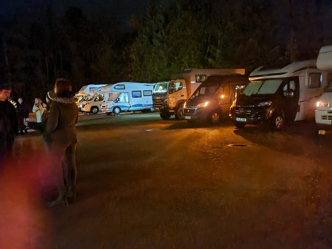 Und auch die anderen Wohnmobilisten haben für ein leises "Feuerwerk" gezündet... die Warnblinkanlage 😉