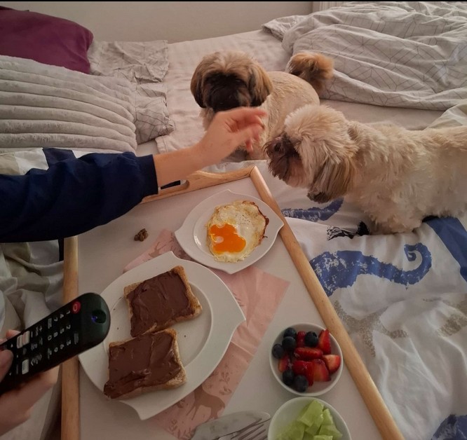 Daphne und Emmy genießen die Zeit zwischen den Jahren... ausruhen, kuscheln und Frühstück im Bett 😉