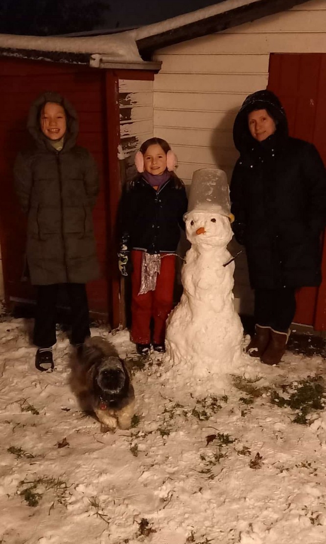 Heute durfte Filou mit seiner Familie seinen ersten Schneemann bauen 👍